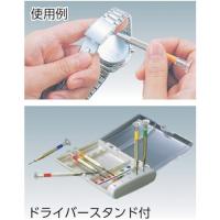 ●時計・メガネの分解や、精密機器などのねじ回しに便利です。●後端のキャップが回転するため、細かい作業もスムーズにおこなえます。●色でサイズが分かる、カラーバンド付です。●時計やカメラなど微細なネジ回しに。●刃先:[[−]]1.2●軸長(mm):24●全長(mm):94●軸:特殊合金鋼●グリップ:鋼合金●座金:アクリル樹脂