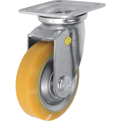 金物・建築資材 キャスター 静電キャスター ●車輪には導電性素材を使用しているため摩耗しても均一に効果が持続します。●EUW車輪は強度に自信の独自開発ボックススタイルを採用しています。●カーボン素材未使用で、床面に跡がつきません。●電子部品・精密測定装置の運搬●許容荷重(daN):245●許容荷重(kgf):250●車輪径D(mm):130●車輪幅(mm):42●取付高H(mm):177●取付座A(mm):108●取付座B(mm):108●取付ピッチX(mm):80●取付ピッチY(mm):80●取付穴径P(mm):11.5●タイプ:自在式●プレート式●体積固有抵抗値10[[の6乗]]〜10[[の8乗]]Ω・cm(測定値です。保証値ではありません。)●自在旋回部は滑らかな動きの二層ベアリングを装備●自在旋回部には導電性グリスを使用●自在式●金具:スチール●金具表面処理:三価クロメート仕上げ●車輪:スチールホイール、制電性ウレタン