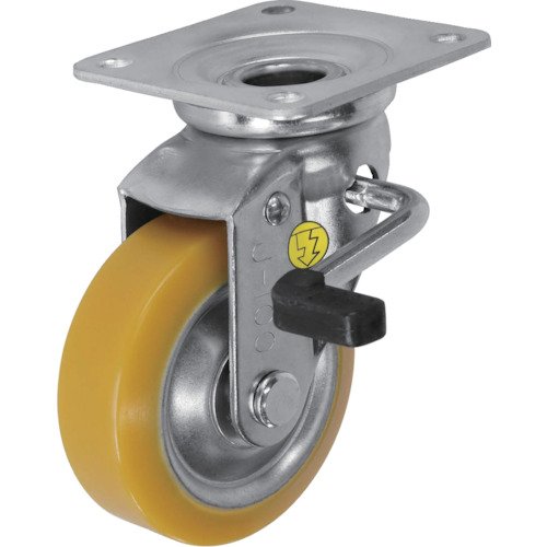 金物・建築資材 キャスター 静電キャスター ●車輪には導電性素材を使用しているため摩耗しても均一に効果が持続します。●EUW車輪は強度に自信の独自開発ボックススタイルを採用しています。●カーボン素材未使用で、床面に跡がつきません。●電子部品・精密測定装置の運搬●許容荷重(daN):176●許容荷重(kgf):180●車輪径D(mm):100●車輪幅(mm):35●取付高H(mm):144●取付座A(mm):95●取付座B(mm):95●取付ピッチX(mm):71●取付ピッチY(mm):71●取付穴径P(mm):11.0●タイプ:自在式(ダブルストッパー付)●プレート式●体積固有抵抗値10[[の6乗]]〜10[[の8乗]]Ω・cm(測定値です。保証値ではありません。)●自在旋回部は滑らかな動きの二層ベアリングを装備●自在旋回部には導電性グリスを使用●自在式(ダブルストッパー付)●旋回部と車輪を同時にロック●左側ストッパー付もあります(Φ75除く)●金具:スチール●金具表面処理:三価クロメート仕上げ●車輪:スチールホイール、制電性ウレタン