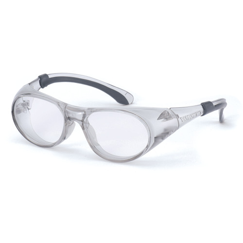 保護具 保護メガネ・防災面 二眼型保護メガネ ●別注で度付き保護メガネの製作も可能です。(処方箋が必要です。)●UVカット(99.9%)仕様のレンズです。●レンズには曇り止め、傷付防止加工を施してあります。●切削、刈払い、木工、製材、研磨などの作業で前方向からの飛来物●レンズ色:クリア●テンプル色:グレー●フレーム色:グレー●幅(mm):144●高さ(mm):44●長さ(mm):148●レンズ厚(mm):約2●防曇加工:○●防傷加工:○●UVカット:○●ノーズパッド:○●JIS T 8147規格品●上下ひさし付●レンズ厚:約2mm●レンズ:ポリカーボネート●フレーム:ナイロン