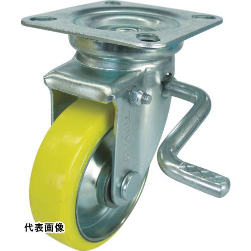 金物・建築資材 キャスター 静電キャスター ●帯電防止性ウレタン車使用により、静電気が帯電しにくく、ホコリがつきにくいキャスターです。●静電気を嫌う電子、医療機械用に。●許容荷重(daN):180●許容荷重(kgf):183.6●車輪径D(mm):100●車輪幅(mm):32●取付高H(mm):144●取付座A(mm):95●取付座B(mm):95●取付ピッチX(mm):67〜74●取付ピッチY(mm):67〜74●取付穴径P(mm):11●タイプ:自在式(ダブルストッパー付)●許容荷重(N):1800●プレート式●電気抵抗値:10[[の8乗]]Ω(実測値で、保証値ではありません。)●コマーシャルベアリング入●自在式(ダブルストッパー付)●旋回部と車輪を同時にロック●金具:スチール●金具表面処理:三価ユニクロ仕上げ●車輪:スチールホイール、帯電防止性ウレタン(イエロー)