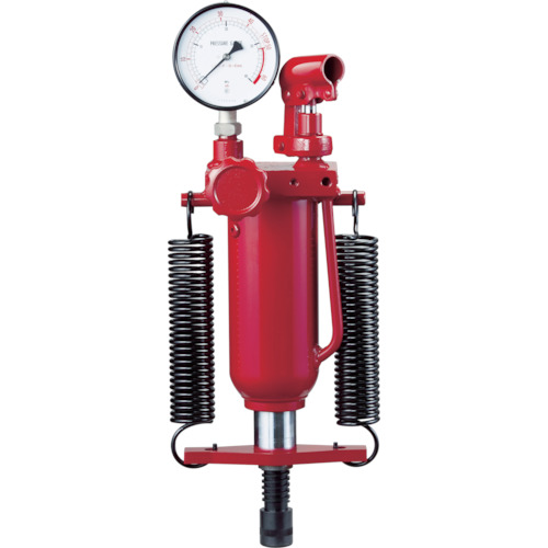 電動・油圧・空圧工具 油圧工具 油圧プレス・油圧ジャッキ ●油圧矯正プレスの動力部です。●お客様で作成したフレームに取り付けていただきご使用ください。●能力kN(t):50(5)●高さ(mm):438●補助ねじ(mm):80●ベース寸法(mm):125×99●受金径(mm):φ33●ラムストローク(mm):150●ハンドル(3本つなぎ)