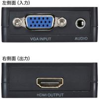 ●VGAアナログ信号をHDMI信号に変換するコンバーターです。●3.5mmステレオ音声信号も同時に変換できるのでHDMIディスプレイから映像と音声両方を出力することもできます。●USB給電で動作するUSBバスパワー方式なので、モバイル環境でも設置が簡単に行えます。●ドライバなどのインストールは必要なく、接続するだけで使用できます。●幅(mm):60●奥行(mm):54●高さ(mm):20●消費電力(W):2.0●インターフェース:VGA●インターフェイス入力1:ミニD-sub15pin(メス)×1●インターフェイス入力2:ステレオミニジャック×1●インターフェイス出力1:HDMI TypeA(メス)×1●最大表示解像度:1920×1080●ABS樹脂●給電用ケーブル(USB)