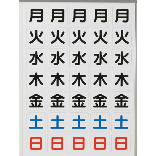 ●月予定表ボードに簡単に吸着します。●長さ(mm):217●厚さ(mm):0.8●1片サイズ(mm):27×27●色:白●シート内容:月〜日各5片●等方性マグネット●ポリ塩化ビニール(PVC)