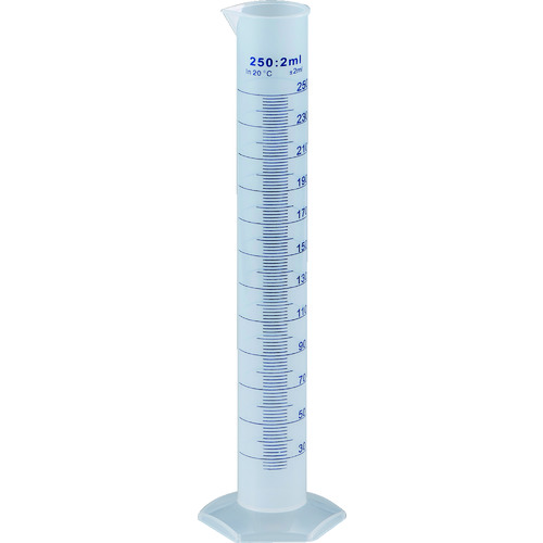 研究用品 理化学用品 メスシリンダー ●見やすい青目盛付で耐薬品性のあるPP製メスシリンダーです。●オートクレーブ対応しています。●ISO6706クラスBに準拠しています。●容量(ml):250●目盛間隔(ml):2(開始24)●外径(mm):41●高さ(mm):316●口内径(mm):38●台座径(mm):78●PPメスシリンダー 青目盛付●ISO 6706 クラスB準拠●ポリプロピレン(PP)