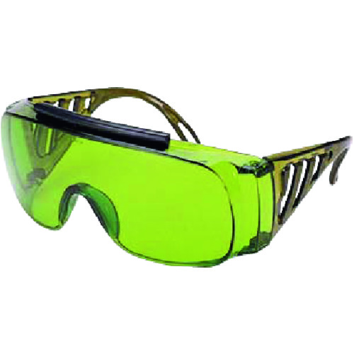 工事・照明用品 溶接用品 遮光メガネ ●耐擦傷性に優れたUVカット遮光レンズです。●ガス溶接作業、溶接周辺作業に。●遮光度:#1.7●フレーム寸法(mm):W157×H64×D150●レンズ色:グリーン●UVカット:0.999●ツル調整:×●メガネ併用可否:○●面体寸法(mm)奥行×縦×横:W157mm×H64mm×D150mm●レンズ:ポリカーボネート(PC)●レーザー光用遮光めがねとして使用しないでください。