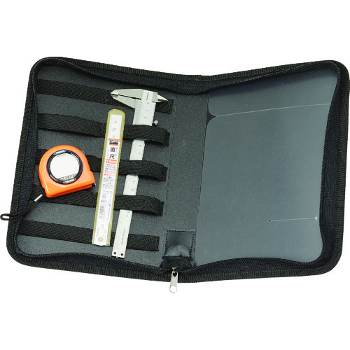 手作業工具 工具セット ツールキット ●コンベックス、標準型ノギス、直尺が入った工具セットです。●ゴムバンドで挟む機構ですので必要なアイテムを追加しカスタマイズすることが可能です。●ノート(A5)や書類、名刺、カード等を収納可能なフォルダー付です。●ラウンドファスナーで中身がこぼれません。●コンベックス、直尺、ノギスが入った工具セットです。●ノート(A5)や書類、名刺、カード等を収納可能なフォルダ−付です●ケース寸法(mm)間口:285●ケース寸法(mm)奥行:195●ケース寸法(mm)高さ:45●セット内容(点):4●ケース色:ブラック●適合本体:TPC●直尺、コンベックス、ノギスが入った工具セット。●ケース:ポリ塩化ビニル(PVC)●コンベックス:スチール●ノギス、直尺:ステンレス●メモリプレート付コンベックス(TT16-35B)●直尺15cm(TSU-15N)●ユニバーサルノギス(THN-15-U)●ツールポーチ(TPC)