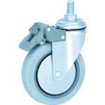 金物・建築資材 キャスター 省音キャスター ●ゴム車より床に跡が付きにくい材質です。●静音性に優れています。●1回の動作で車輪部と旋回部を同時に固定させるワンタッチストッパー機構です。●静音性、清潔感が求められる現場に最適なキャスターです。●許容荷重(daN):88●許容荷重(kgf):90●車輪径D(mm):127●車輪幅(mm):32●取付高H(mm):171●軸長L(mm):25●ねじT:M12●ねじピッチ(mm):1.75●タイプ:自在式(ストッパー付)●自在式(ストッパー付)●ねじ込み式●金具:スチール●金具表面処理:三価亜鉛メッキ●車輪:エラストマー