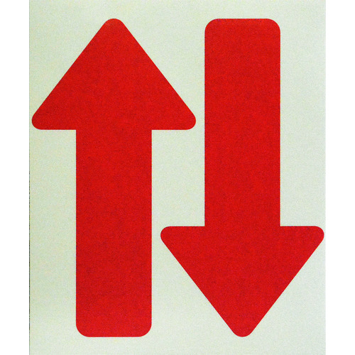 安全用品 標識・標示 路面標示 ●表面梨地エンボス仕上げなので滑りにくく耐摩耗性に優れています。●しっかり貼れてきれいにはがせます。●室内の誘導や順番待ちに。●ソーシャルディスタンスの確保に。●表示内容:矢印●取付仕様:粘着シール●縦(mm):128●横(mm):258●厚さ(mm):0.1●色:赤●タイプ:マットタイプ●屋内用●取付方法:貼付タイプ●表面:梨地エンボスPETフィルム50μ●基材:ポリオレフィン●粘着剤:アクリル系
