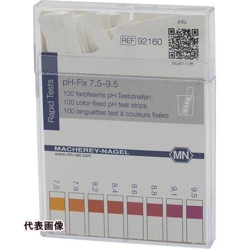 研究用品 理化学用品 試薬・計測器 ●変色が完了するまで液にひたしておけるので、弱緩衝液の測定も可能です。●スティックはプラスチックのため、毛細管現象がなく、有害サンプルで指を濡らすことはありません。●異なった色素を含浸させたセルロース切片(1〜4個)をプラスチックスティックに個々に圧着しています。●幅(mm):6●長さ(m):85●測定範囲:pH7.5〜9.5●サイズ・包装:6×85mm・プラスチックケース入●pH測定目盛間隔:0.2/0.4●変色切片数:1●入数:1箱(100枚入)●pH-FiX