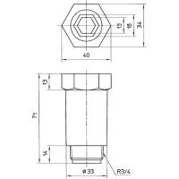 ●配管の保護用●工事中、水栓ソケットなどのネジの保護に使用。●ねじサイズ:R3/4●全長(mm):71●六角対辺(mm):34●高さ(mm):71●奥行(mm):40●呼び径:R3/4●呼び20配管用。●ポリプロピレン