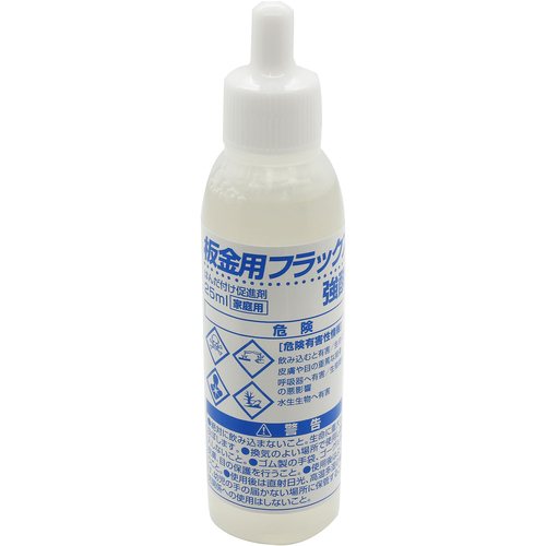 電子機器 はんだ用品 フラックス ●銅・真鍮・ブリキ板のはんだ付けに最適です。●板金用フラックスは塩化物を含んでいるので、表面の酸化膜を強力に除去します。●銅・真鍮・ブリキ板のはんだ付けに。●容量(ml):25●塩化亜鉛35〜45%●塩化アンモニウム4〜6%●塩化水素3〜4%●水47〜57%●アルミ・鋳物物・クロムメッキは、はんだ付けできません。●残渣物が金属を腐食させるため、使用後に十分水洗いが必要です。●プリント基板へは使用できません。
