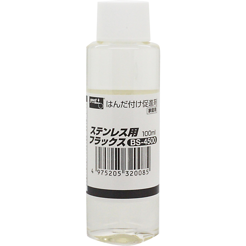 電子機器 はんだ用品 フラックス ●ステンレスのはんだ付けに最適です。●ステンレス用フラックスは塩化物を含んでいるので、表面の酸化膜を強力に除去します。●ステンレスのはんだ付けに。●容量(ml):100●水洗浄タイプ●塩化亜鉛35〜45%●塩化アンモニウム4〜6%●塩化水素3〜4%●水47〜57%●アルミ・鋳物物・クロムメッキは、はんだ付けできません。●残渣物が金属を腐食させるため、使用後に十分水洗いが必要です。●プリント基板へは使用できません。