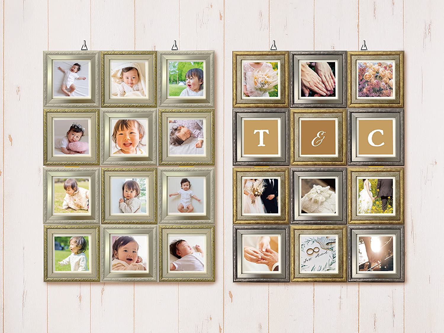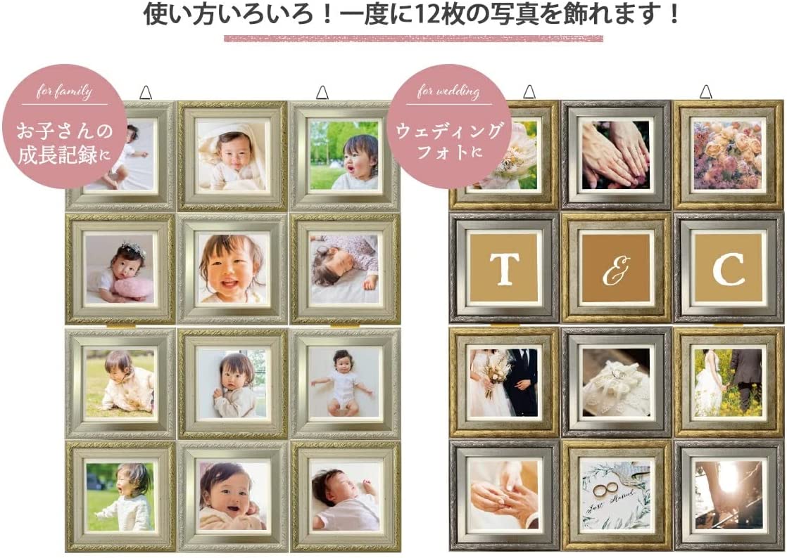 写真たておしゃれかわいい結婚祝い出産祝い内祝いプレゼントギフト還暦祝いフォトフレーム,写真立て,額縁,シャルム12面,スクエア,ましかく,見開き,アンティーク写真,フレーム,フォト,壁掛け,卓上,10角,インテリアシャルムフォトフレーム12面見開き|写真立て額縁ましかくスクエア