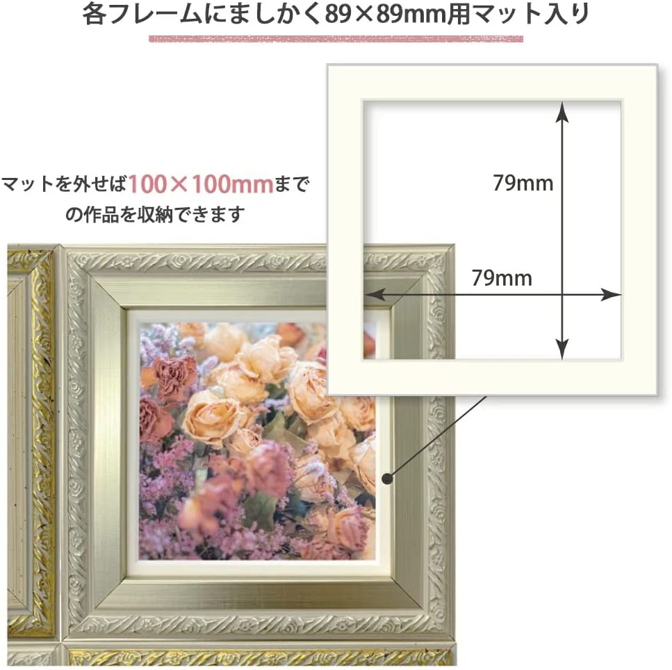 フォトフレーム 写真立て 額縁 シャルムフレーム 12面10角 見開き ましかく スクエア アンティーク インテリア 玄関 赤ちゃん 子供 記念日 ク