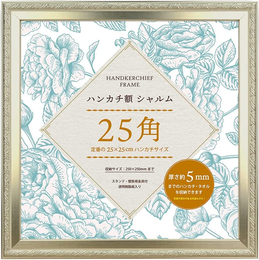 ハンカチ額 シャルム 25角です。/※ハンカチの厚みは5mmまで収納可能。Amazon限定特典 メガジャケ(約24×24cm)の収納にもおすすめです。