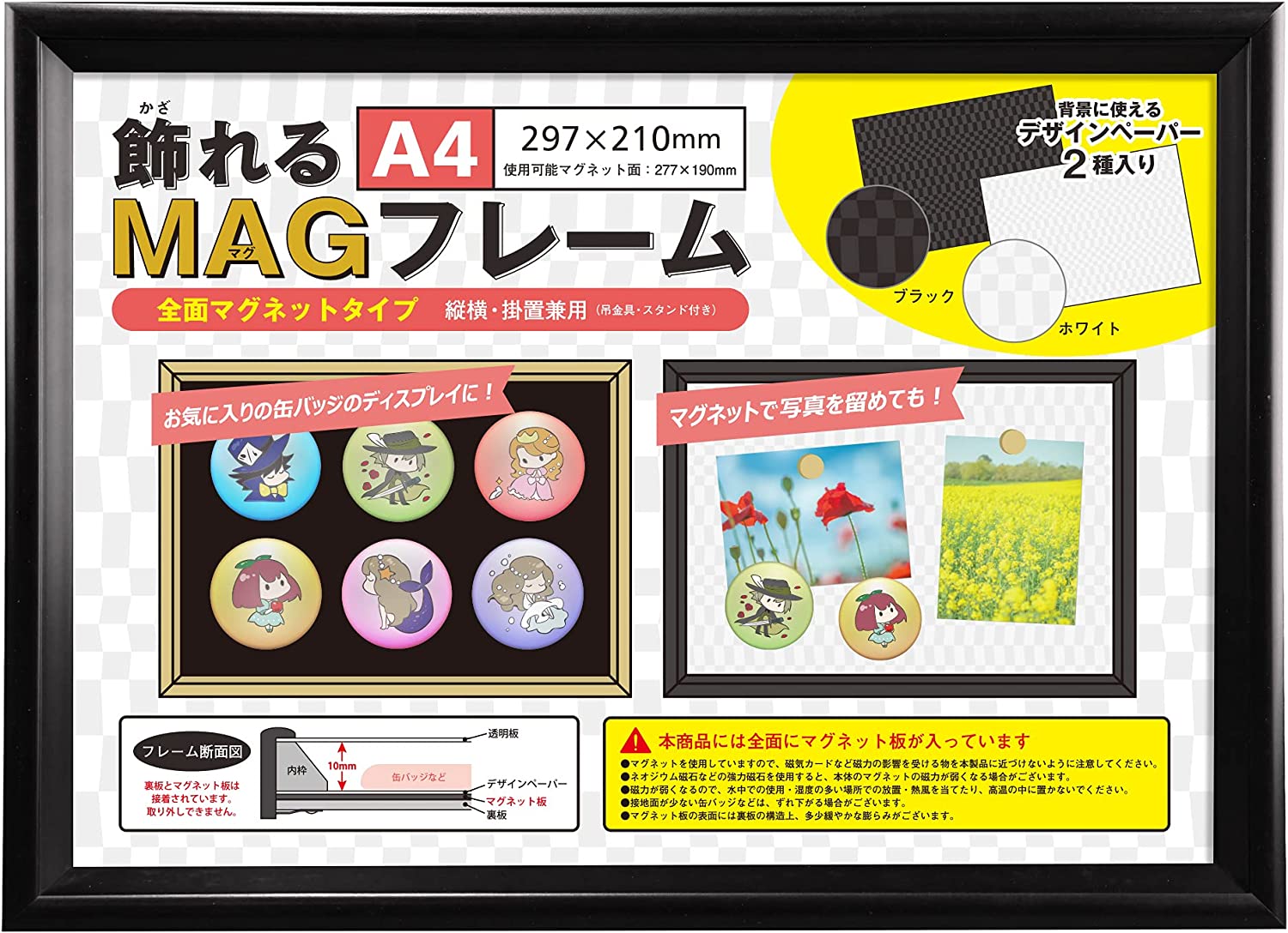 写真たてフォットスタンド推し活グッズ缶バッチコレクションボードディスプレイフレームマグネットボード,フォトフレーム,額縁,写真立て,MAGフレーム壁掛け,卓上,飾れる,A4,収納マグネット,ボード,フレーム,額,写真,磁石,固定,ディスプレイ,インテリアMAGフレームA4判|マグネットボード壁掛け卓上フォトフレーム