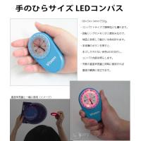 本体横のボタンを押すと、まぶしさの少ない赤色LEDが点灯し、コンパス内部を照らします。透明カプセルを採用し、裏面に指標を付けたことで、裏側から方位を確認することもできます。非常時、災害時に方位を知る防災アイテムとしても役立ちます。