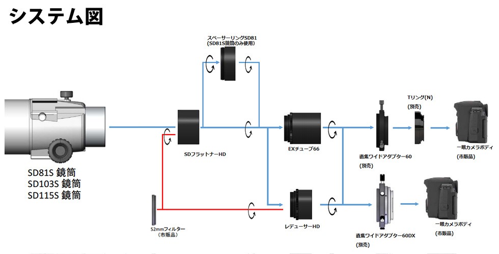 SDフラットナーHD+レデューサーHD:■鏡筒:SD81SSD103SSD115S
