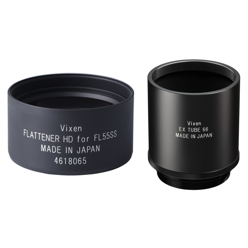 FL55SS鏡筒がF5.7高性能アストログラフへ!FL55SS鏡筒用の高性能フラットナーレンズおよび接続リングのセットです。像面の平坦化により写真性能が向上し、高レベル直焦点天体撮影をお楽しみいただけます。※フラットナーとは通常の光学設計では写野周辺に収差が発生し、点像が流れて写ります。フラットナーはそのような収差を補正し、写野周辺までしっかりと星を点のままで撮影するための補正レンズです。