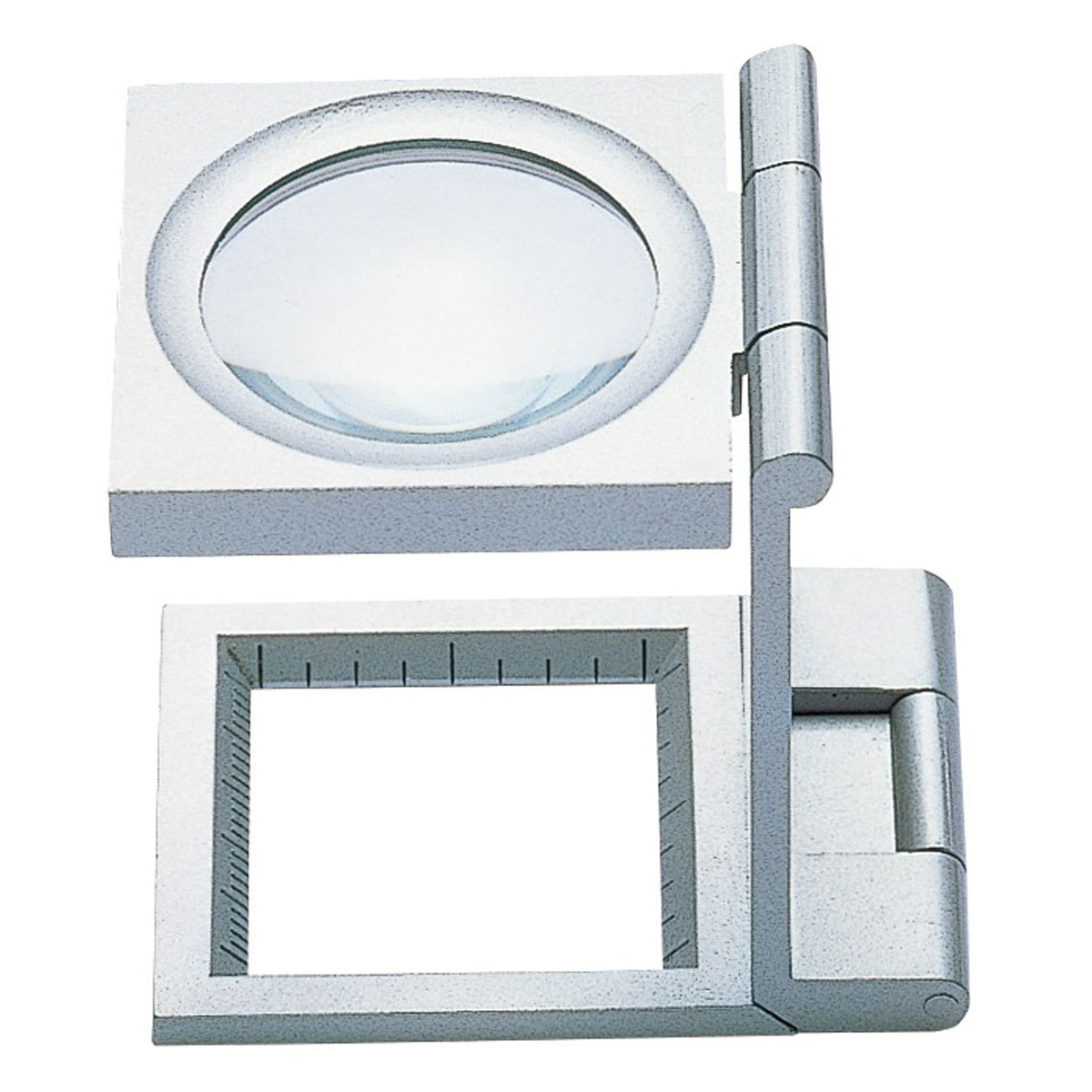 シマミルーペのスタンダードモデル(スケール付)です。シマミ(縞見)ルーペとは繊維織物の糸数の測定するためのルーペです。布地チェックのほか、印刷の仕上げなど多用途に役立ちます。サイズ:53×38×14mm(収納状態)