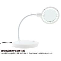 デスクに置いて両手を自由に使えるLED照明付ルーペです。裁縫やプラモデル作りなど長時間の作業や読書に最適。見やすい大口径100mmレンズを採用しています。サイズ:300×300×170mm