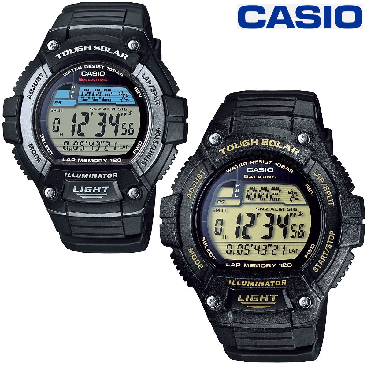 10気圧防水仕様を備えたソーラー時計です。ラップタイムを計測できます。10気圧防水ワールドタイム:世界48 都市(31タイムゾーン、サマータイム設定機能付き)+ UTC(協定世界時)の時刻表示ストップウオッチ(1/100 秒(10 時間未満)/1 秒(10時間以上)、100 時間計、ラップ/ スプリット付き)、LAP データを最大120 本メモリー(ラップカウンター001 〜 999)、計測ログデータを最大60 本メモリー(データ番号、計測開始月・日・時・分、ラップ/ スプリットタイム、ラップ番号、最高ラップ表示)タイマー:最大2 本の時間指定が可能なインターバル計測用のタイマー(セット単位:5 秒、最大セット:99分55 秒、1 秒単位で計測、リピート(1 〜 10 回まで設定可能)機能付き)時刻アラーム5 本(1本のみスヌーズ機能付き)・時報LEDライト(残照機能、残照時間切替(1.5秒/3秒)付き)フルオートカレンダー操作音ON/OFF切替機能パワーセービング機能(暗所では一定時間が経過すると表示を消して節電します)バッテリーインジケーター表示12/24時間制表示切替※ 「W-S220-9AJF」 から型番が変更となりました。商品の仕様に変更はありません。