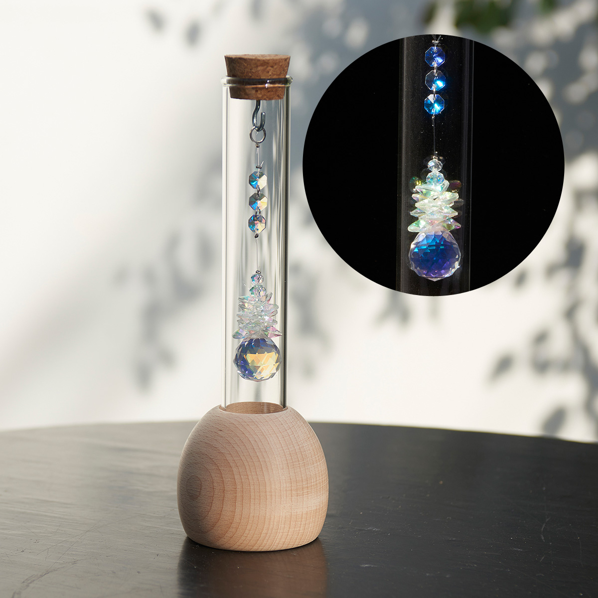 サンキャッチャー 試験管 木台付 北欧 インテリア 癒し 雑貨 ギフト かわいい おしゃれ 置き物 オブジェ プレゼント 誕生日 結婚 還暦 記念 周