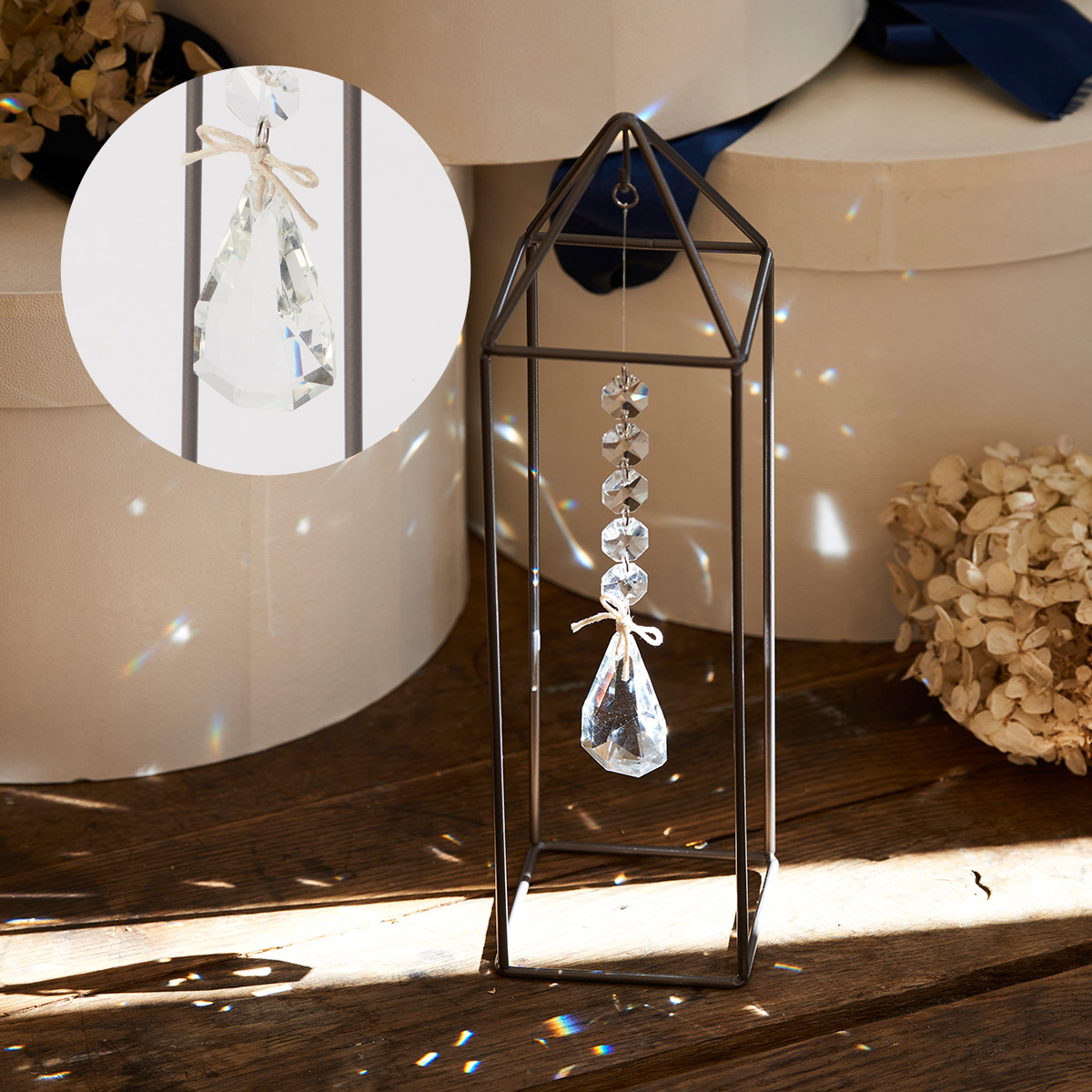 太陽の光が当たると虹色のプリズムがお部屋に煌めきを与えてくれる、可憐なインテリア。置き型タイプで場所を選ばず、窓際などに設置頂けるサンキャッチャーです。サイズ:高さ280×幅80×奥行80mm