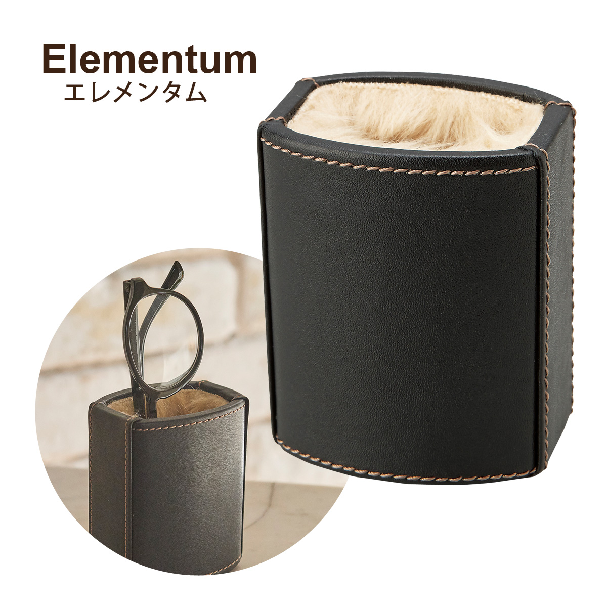 シックなスタイルで決める、メンズコレクション。ブラックの生地にブラウンのステッチが上品なメガネスタンド。サイズ:高さ90×幅75×奥行60mm