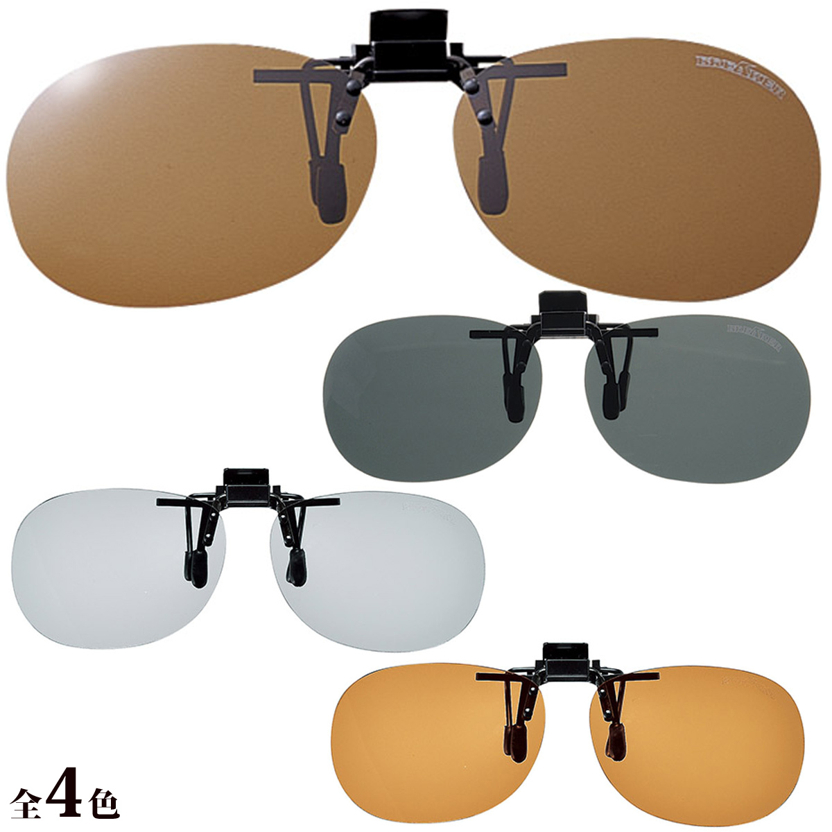 安価タイプのクリップオン偏光サングラス。お手持ちのメガネにワンタッチで取付け、上げ下げしてするだけでOKです。レンズはハードコートです。台湾製。水面の反射を抑える偏光グラスを採用。