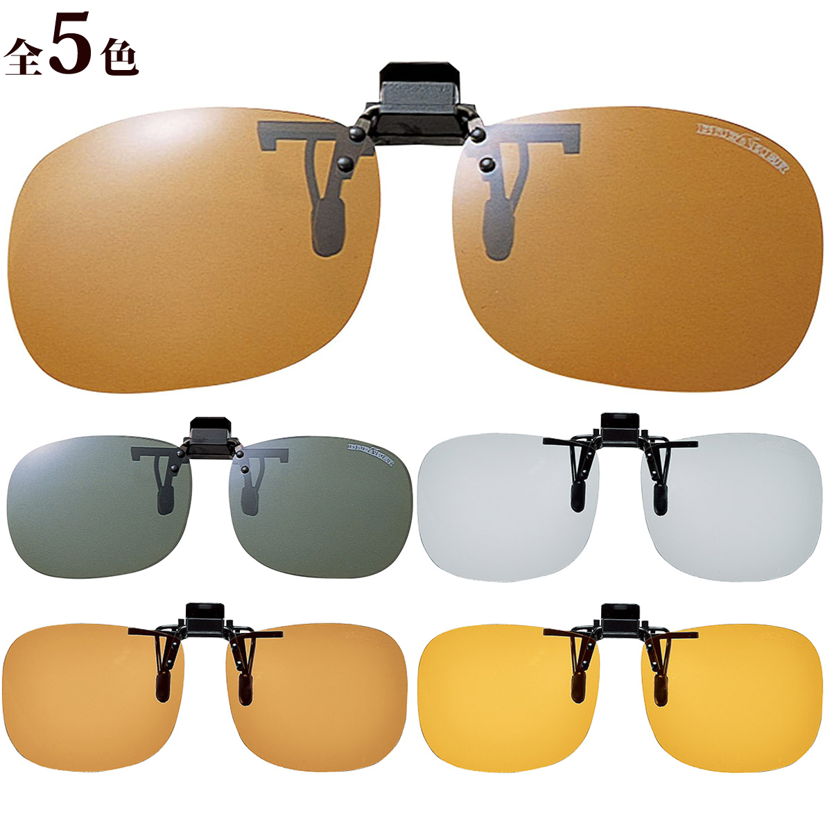 安価タイプのクリップオン偏光サングラス。お手持ちのメガネにワンタッチで取付け、上げ下げしてするだけでOKです。レンズはハードコートです。台湾製。