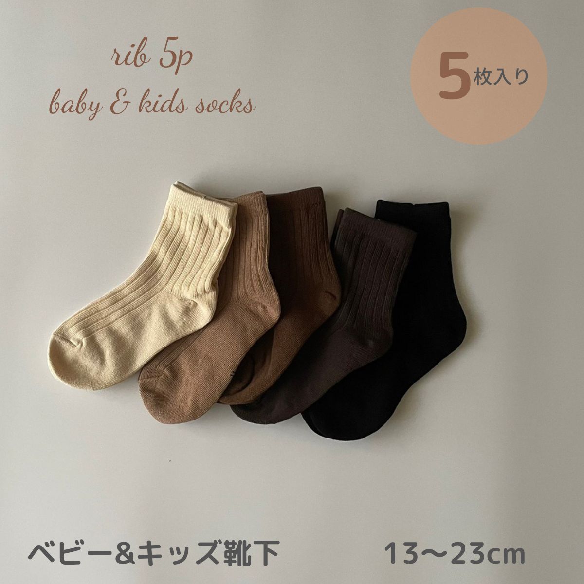 ベビー キッズ 靴下 ソックス 5足 セット rib 5p socks 落ち着いた色合いが可愛い靴下 無地 リブ おしゃれ かわいい 女の子 男の子 子供 こども 13〜23cm