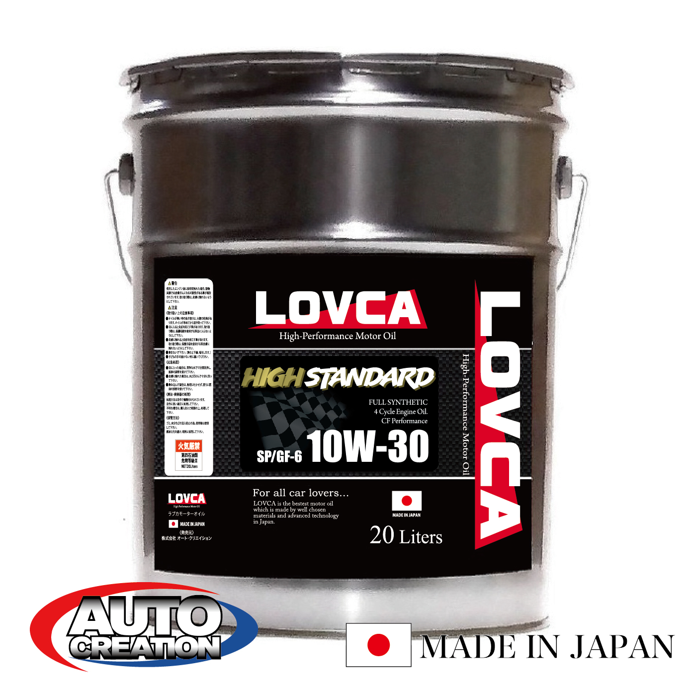 エンジンオイル 10W-30■LOVCA HIGH-STANDARD 10W-30 20L■ターボ車、過走行車に最適!■100%全合成■10W-30■ラブカオイル日本製■LHS1030-20
