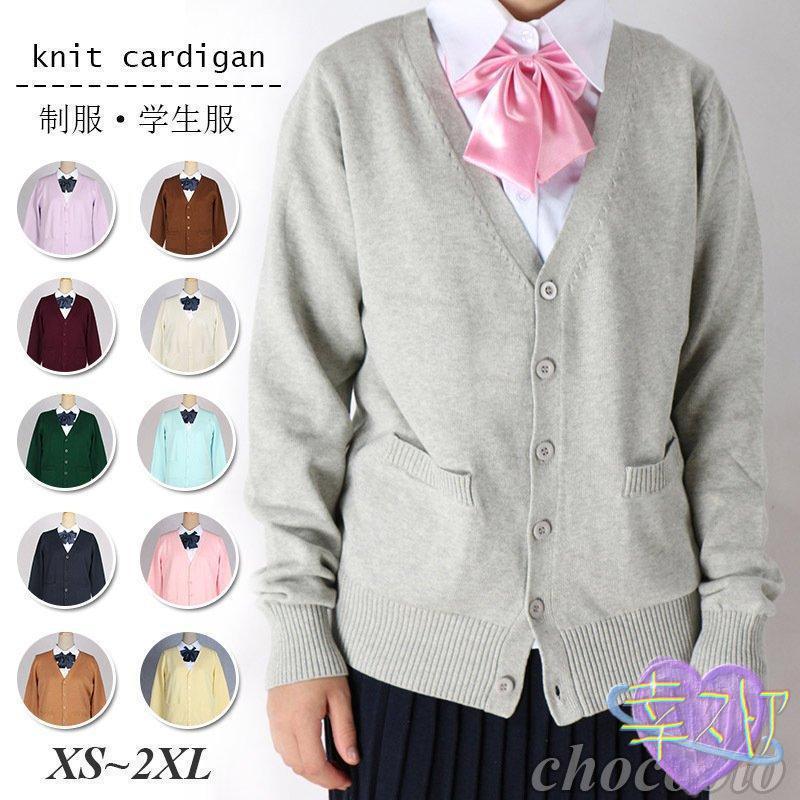 スクール ニットカーディガン Vネック 無地 ス セーター 長袖 オールシーズン フォーマル OL 高校 学生 制服 入学