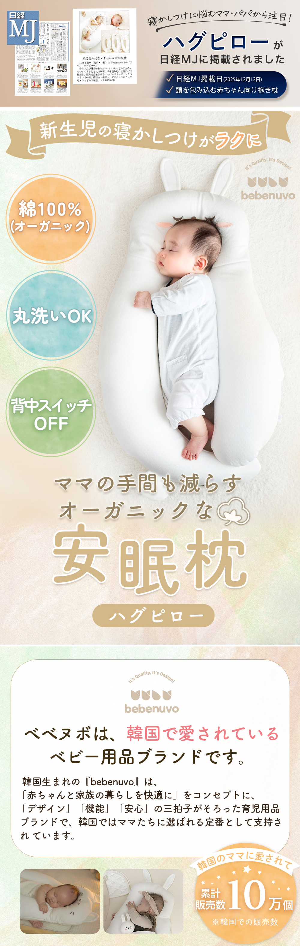 抱き枕 ベビー まくら 絶壁防止 ハグピロー 新生児 赤ちゃん ボディ 向き癖 頭の形 頭変形対策 アニマル かわいい 綿100% 洗える bebenuvo