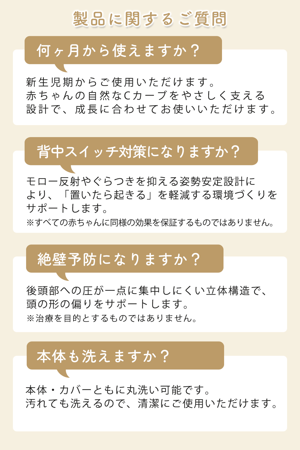 ※体格等によりサイズが合わない場合、首座り以降など様子を見ながらご使用ください