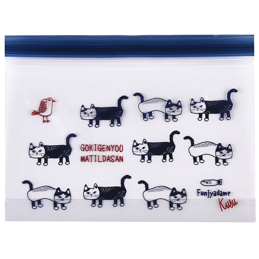 マチ付 かわいい フリーザーストックバック SS 15枚入 20×15×4cm マチルダさん柄 プチギフト お裾分け 小分袋 冷凍 冷蔵 食料保存 猫 クスグル Kusuguru A倉庫
