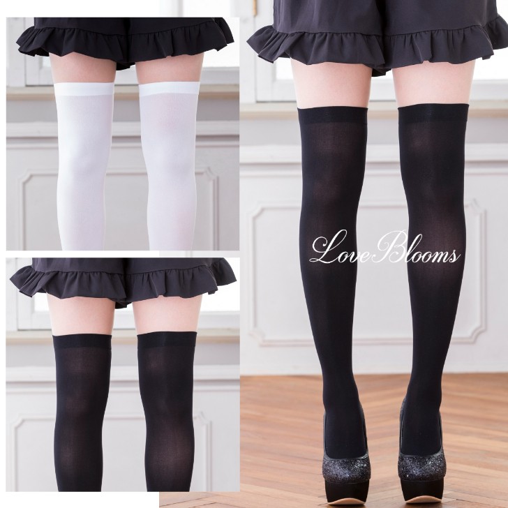 ニーハイソックス 黒 白 ブラック ホワイト 無地 美脚 ナイロン素材 オーバーニー 無地 美脚 レディース 靴下 量産型 地雷系