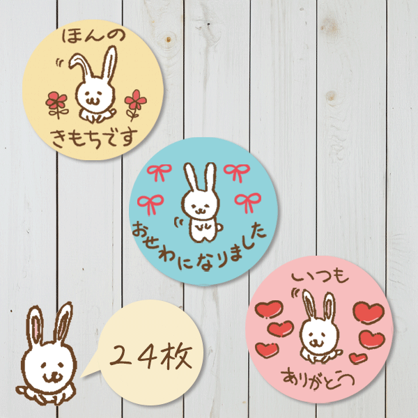 商品名:おせわになりました ほんのきもち いつもありがとう シール うさぎ 24枚 ギフト かわいい