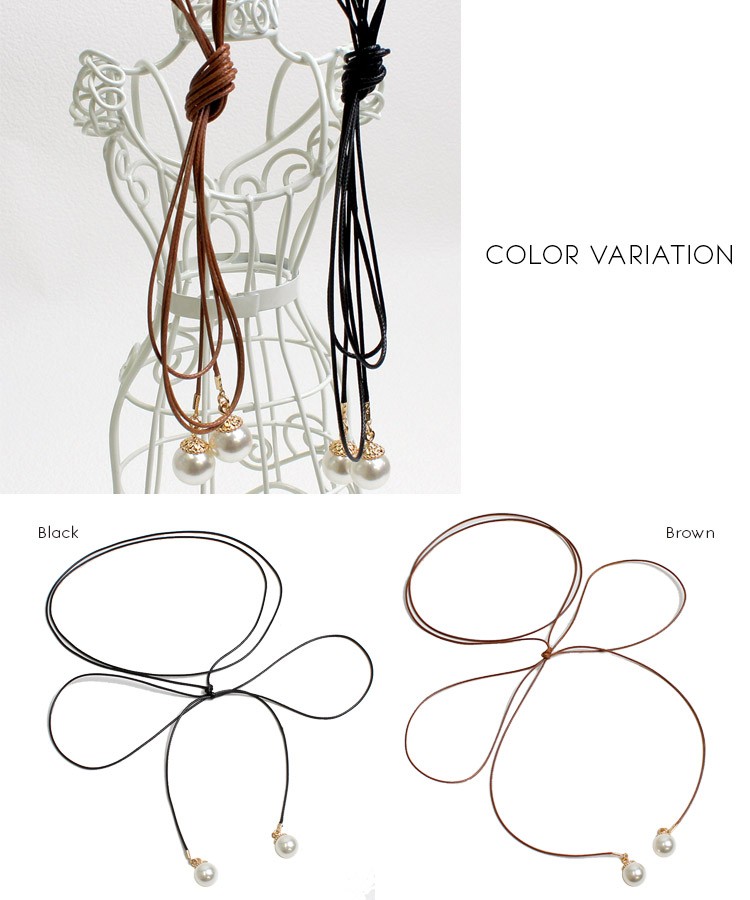 | ◆プライベートブランド Luxemimosa/リュクスミモザ ◆生産地:中国 ◆素材:ナイロン合皮・PU・合金 ◆重量4.7グラム ◆紐素材感:合皮素材 ◆ラリエットパールチャーム付き。 ◆カラー:ブラウン・ブラック ◆自由自在にお好みの長さでアレンジができます。 ◆大人気ラリエットチョーカーネックレスです。合皮紐がクールなハードレディを感じさせ、パールチャームがゆらゆら揺れて可愛くカッコイイ首元を飾ります | |