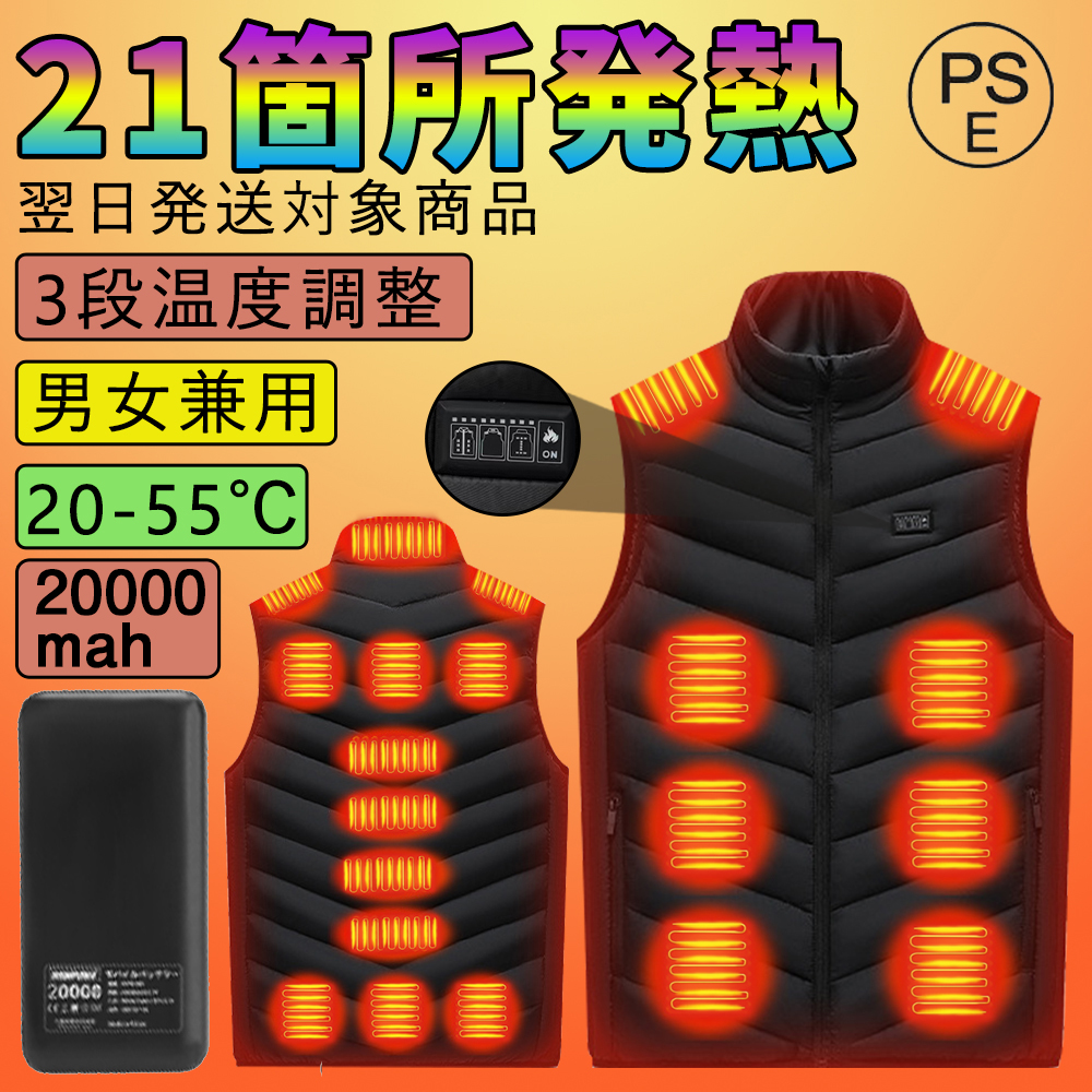 電熱ベスト ヒーターベスト バッテリー付き 15/21箇所発熱 前後独立 速暖 防寒 USB充電 3段温度調整 加熱ベスト 屋外作業 男女兼用 日本製 繊維ヒーター 2025