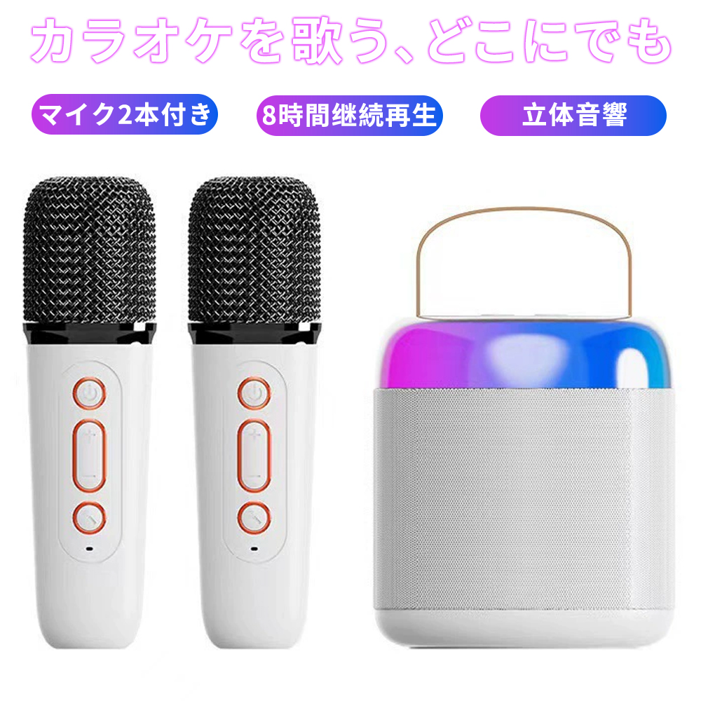 カラオケセット 家庭用 カラオケ スピーカー 高音質 小型 Bluetooth対応 カラオケマイク LEDライト付き スマホ対応 カラオケ 機器 子供 大人 自宅 歌 練習 爆買