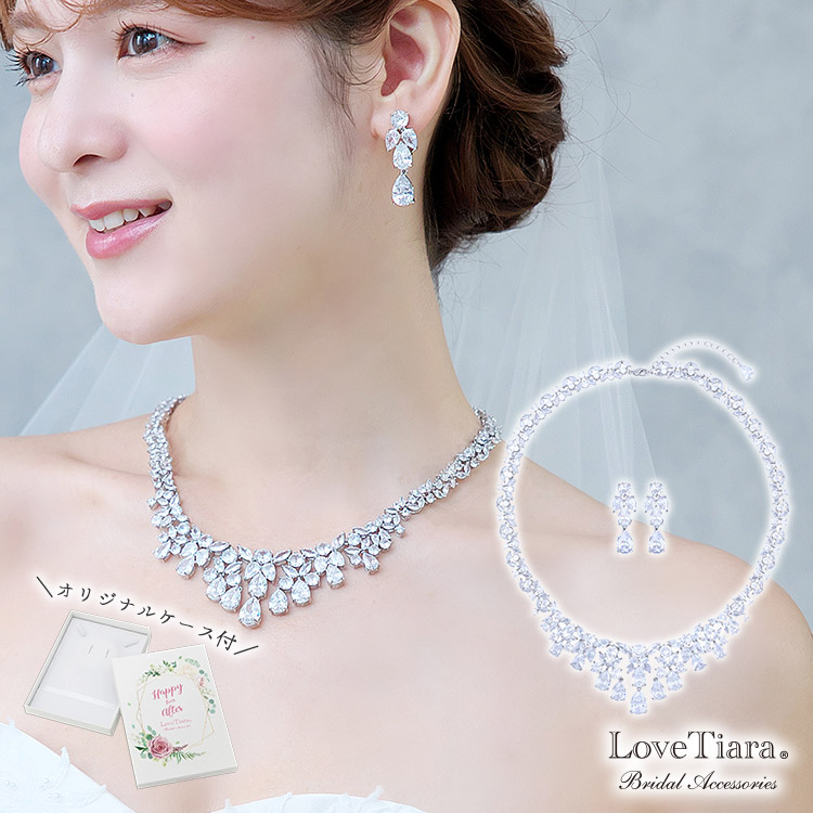ドロップやマーキス、ラウンド型のジルコニアをふんだんに使用した煌びやかで華やかなデザイン。