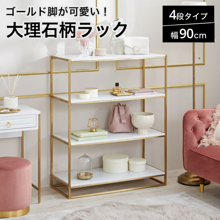 オープンラック おしゃれ 大理石柄 かわいい 4段 幅90cm オープンシェルフ 棚 シェルフ ラック 収納 三段 リビング 収納 シンプル ディスプレイ