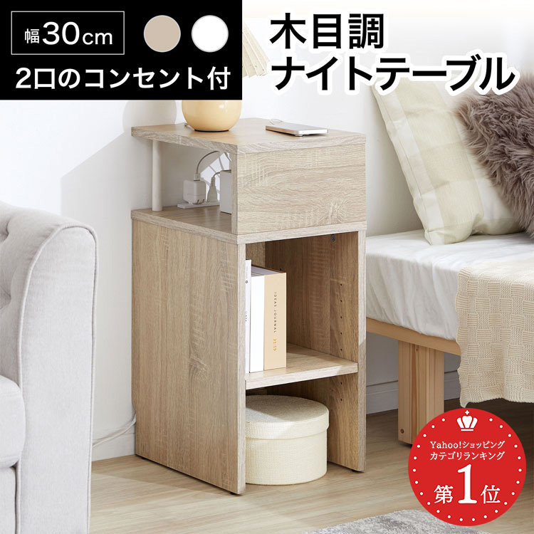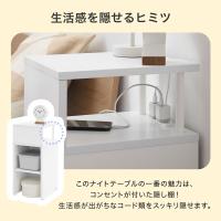 サイドテーブル テーブル 収納棚 棚 収納 本棚 ベッドサイド サイドチェスト 隠せる 二口 コンセント付き コンパクト ナチュラル 木製