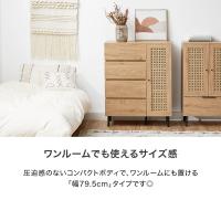 収納棚 チェスト キャビネット リビングボード サイドチェスト 80cm 79.5cm ラタン調 ラタン風 ナチュラル 木製 スチール脚 木目調 おしゃれ