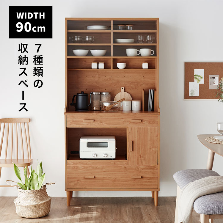 食器棚 レンジ台 キッチンボード おしゃれ 収納 棚 収納 幅90 ラック スリム カップボード キャビネット 北欧風 アンティーク風