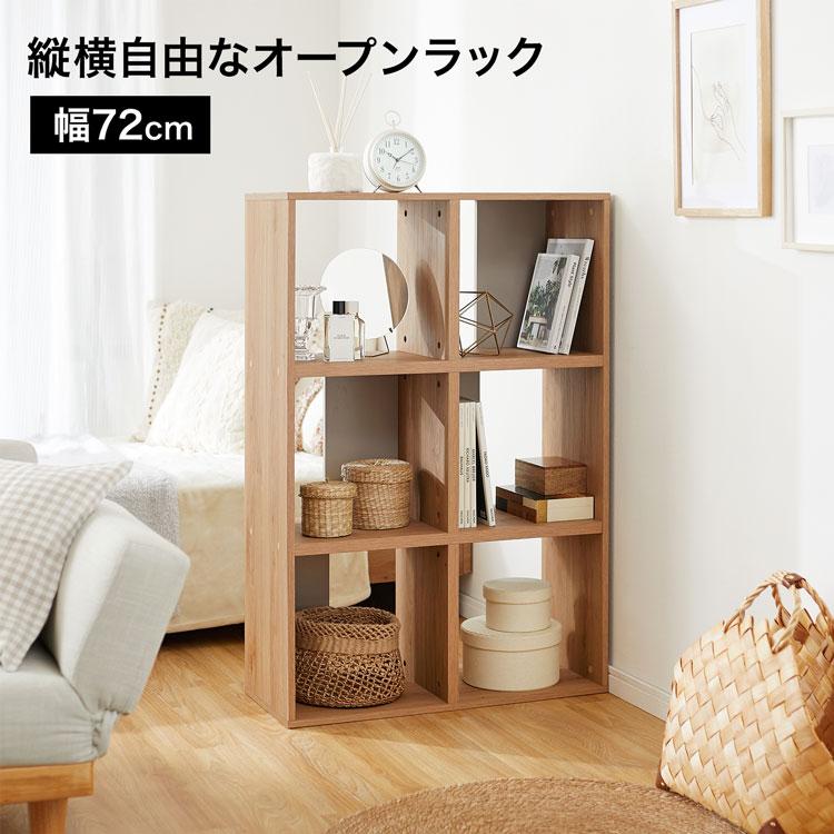 縦横自由にレイアウト、シンプル木目調のオープンラック[幅72cm]です。
