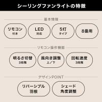 シーリングファンライト シーリングライト 照明 器具 天井 5灯 LEDライト LED 風量調節 省エネ リモコン おしゃれ リバーシブル